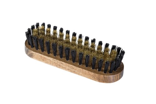 Für die Reinigung ihrer robusten Raulederschuhe eignet sich eine herkömmliche Schuhbürste normalerweise auf Grund ihres zu weichen Besatzes nicht. Stattdessen sollten Sie in diesem Fall auf eine Wildlederbürte zurückgreifen und so den Staub und Dreck aus dem Leder bürsten.Die Wildlederbürste von Solitaire ist mit einer dichten Messingbestückung versehen, welche durch einen Kranz schwarzer Nylonbürsten geschützt wird. Die dichte Messingbestückung sollte Sie nicht abschrecken Ihre Schuhe durch schwungvolle Putzbewegungen von Staub und Schmutzrändern zu befreien. Im Gegensatz zu der Imprägnierung von Rauledern sollte die Reinigung mit einer Wildlederbürte relativ häufig erfolgen.Die Wildlederbürste von Solitaire eignet sich nicht nur für die Reinigung der Schuhe, sondern kann ebenfalls für die Aufrauung des Velourleders verwendet werden. Nur von Glattleder sollten Sie diese Bürste fernhalten, da durch die Messingborsten sofort Kratzer entstehen würden.